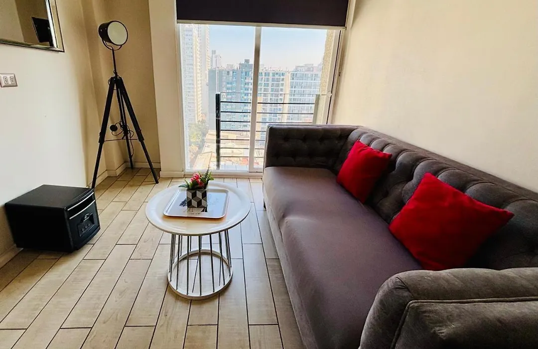 Hermoso Apartamento En La Capital De Chile includes a balcony and a fully equipped kitchen with an air conditioner for utmost comfort.
